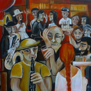 „Nachtbar“ Acryl auf LW, 80 x 80 cm, © Anja Hühn 2015